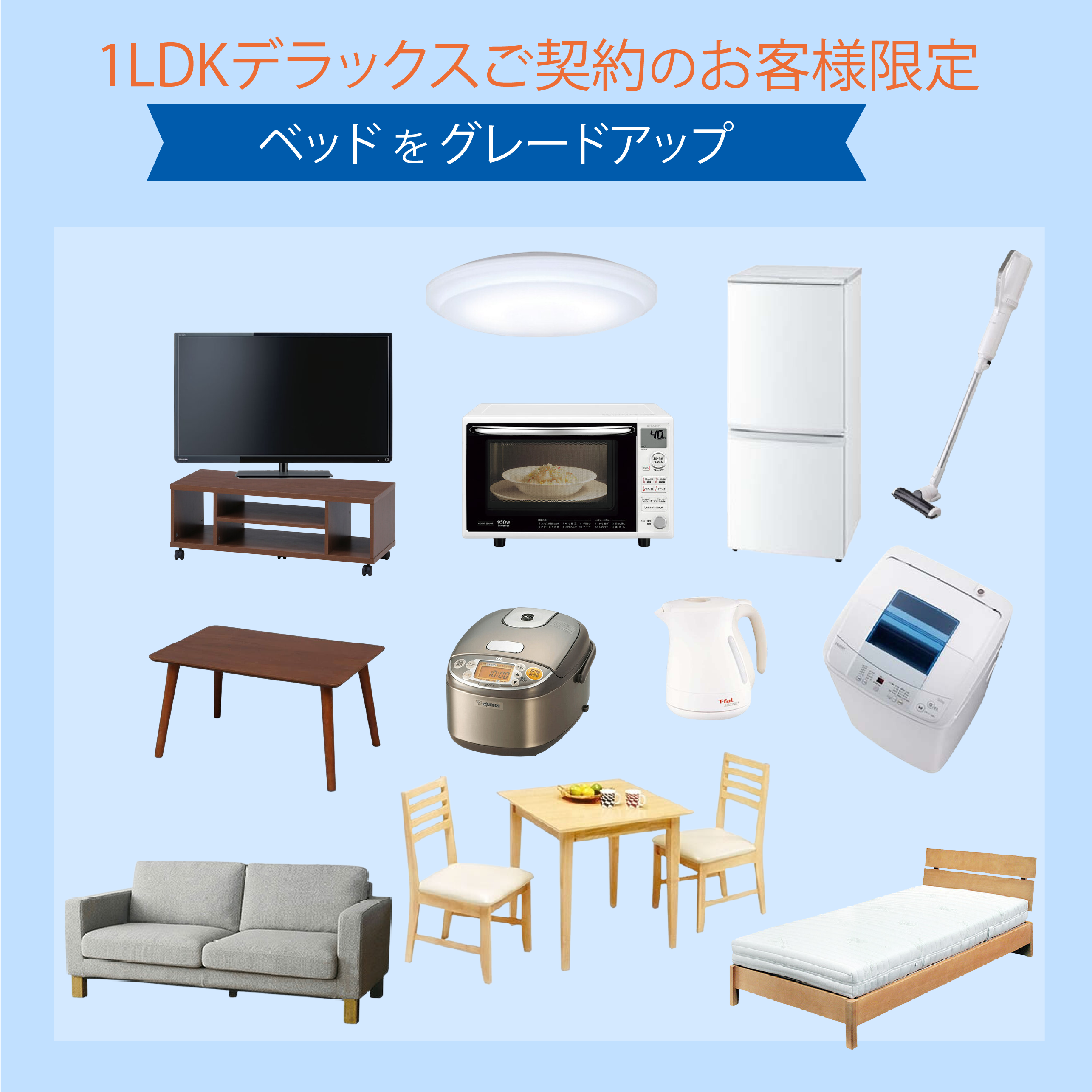 ニッショーの家具家電付物件1LDKデラックスをご契約のお客様限定のお得なプランです。